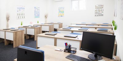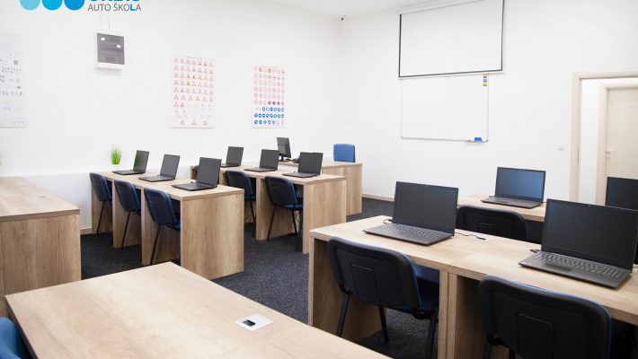 - Savremene učionice opremljene novim računarima za teorijsku obuku.